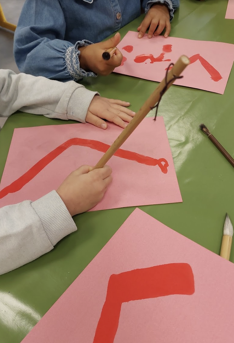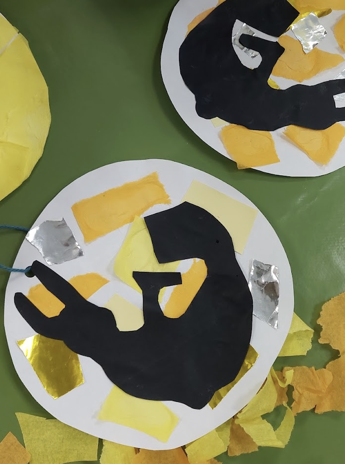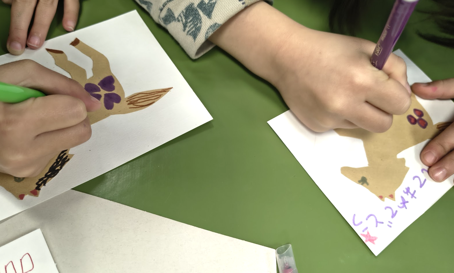 ↑お月見飾り。年末には、毎年恒例の紙芝居「干支のはじまり」を読み、2026年は午年だと知りました。授業の終わりには年賀状を制作。日本の家族やお友達に送ってみよう!