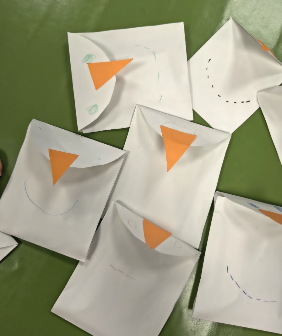 ↑クリスマスの準備も。サンタさんへ日本語でお手紙を書き、手作りの雪だるま封筒へ入れました。