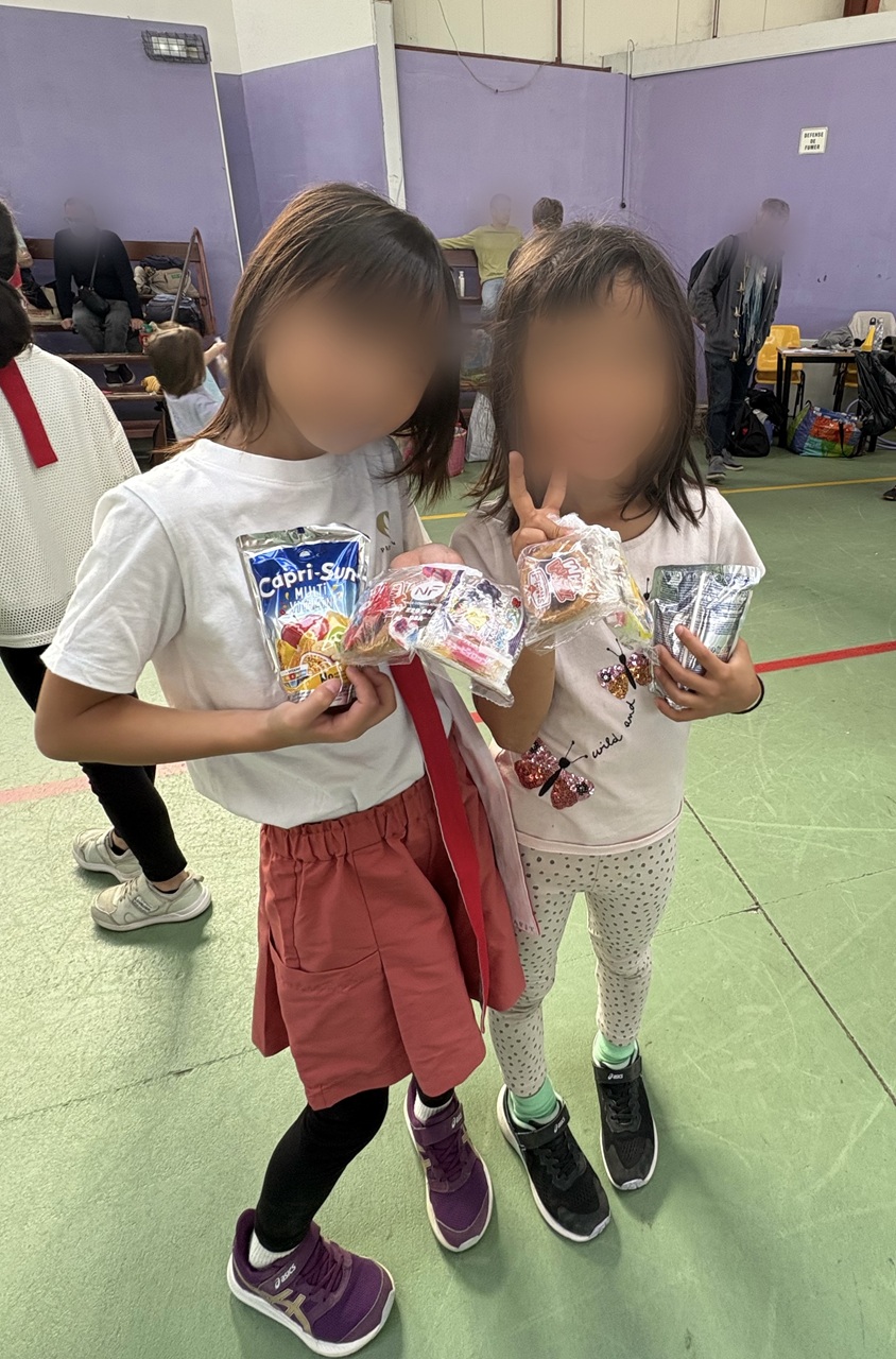 最後に頑張った子どもたちへご褒美にお菓子が配られました。
