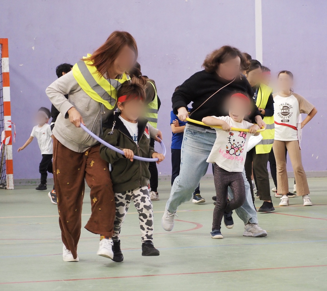 親子でフラフープに入り、息を合わせてゴール目指して走ります!!